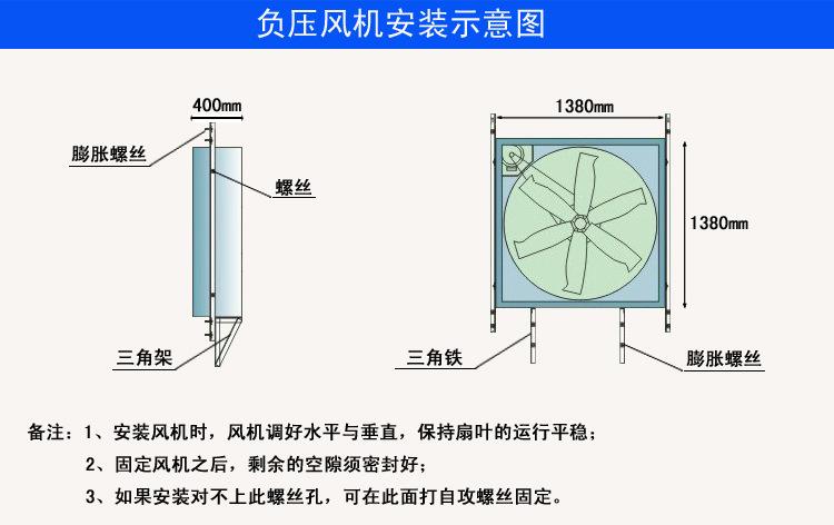 負(fù)壓風(fēng)機(jī)如何安裝呢?廠房降溫現(xiàn)在大量使用負(fù)壓風(fēng)機(jī)進(jìn)行排風(fēng),通過(guò)空氣對(duì)流將車(chē)間內(nèi)的熱量散失到車(chē)間外,在選擇好負(fù)壓風(fēng)機(jī)后一定要根據(jù)車(chē)間的實(shí)際情況來(lái)確定安裝位置,風(fēng)機(jī)要盡量離熱源近的地方,或者粉塵大的地方這樣子的排風(fēng)效果才會(huì)好。下圖為負(fù)壓風(fēng)機(jī)安裝圖:供參考
